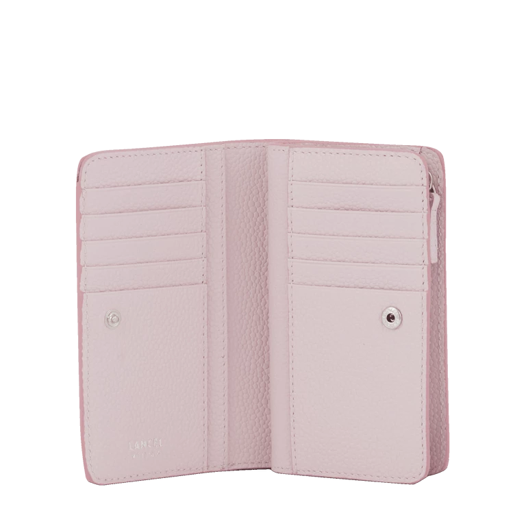 history Young and accessible, NINON de LANCEL is our new line of fashion and urban bags, to wear day and night. Modern and multifaceted with its chain and sliding leather shoulder strap offering an ingenious multi-carry, NINON de LANCEL is characterized by its graphic and assertive style. Signature elements of this strong personality line, the maxi logo handle, curved details and asymmetrical zip give it a rock and trendy look. The bags are made of round, lightweight cowhide leather, offering a structured and flexible look. details Grained cowhide leatherZipped wallet Textile lining A patch pocket for bills, papers, tickets Four multifunctional patch pockets Ten card slots A zipped coin compartment Made in Europe REF:A11123HRTU size 14 x 9 x 3,5 cm care We advise a careful application of the “crème essentielle” to revive and protect your product.