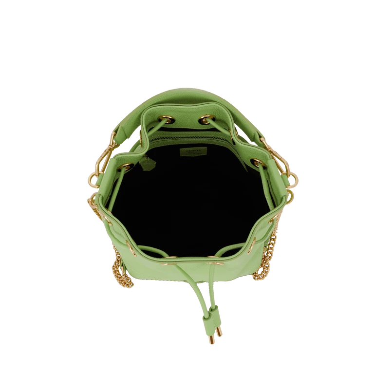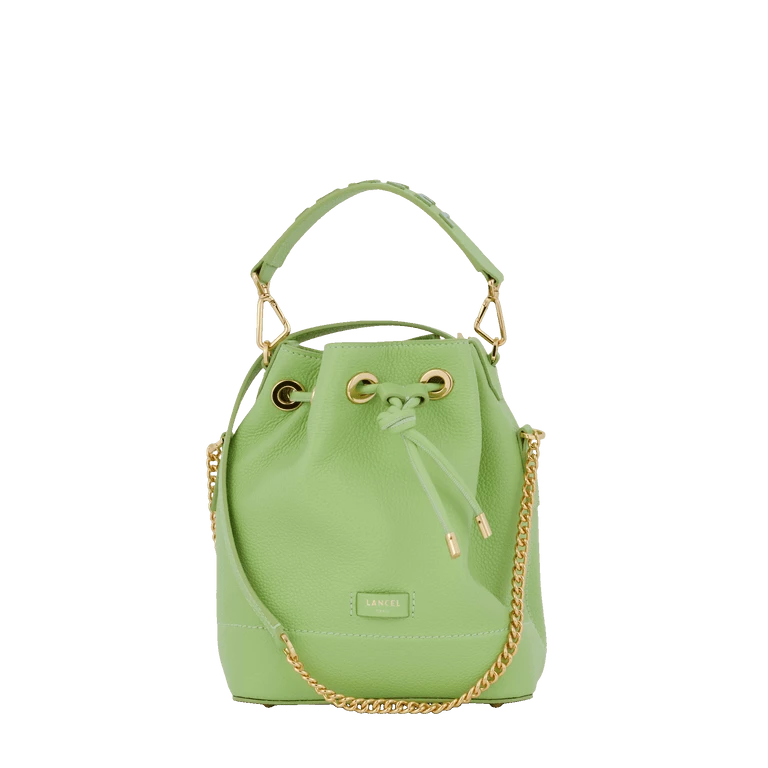 history Young and accessible, NINON de LANCEL is our new line of fashion and urban bags, to wear day and night. Modern and multifaceted with its chain and sliding leather shoulder strap offering an ingenious multi-carry, NINON de LANCEL is characterized by its graphic and assertive style. Signature elements of this strong personality line, the maxi logo handle, curved details and asymmetrical zip give it a rock and trendy look. The bags are made of round, lightweight cowhide leather, offering a structured and flexible look. details Grained cowhide leatherBucket bag Textile lining Removable handle with contrasting letters Drawstring closure One inside patch pocket Metal base feet Chain and leather shoulder strap Made in Italy REF:A117492BTU size 16 x 19 x 10 cm care We advise a careful application of the “crème essentielle” to revive and protect your product.