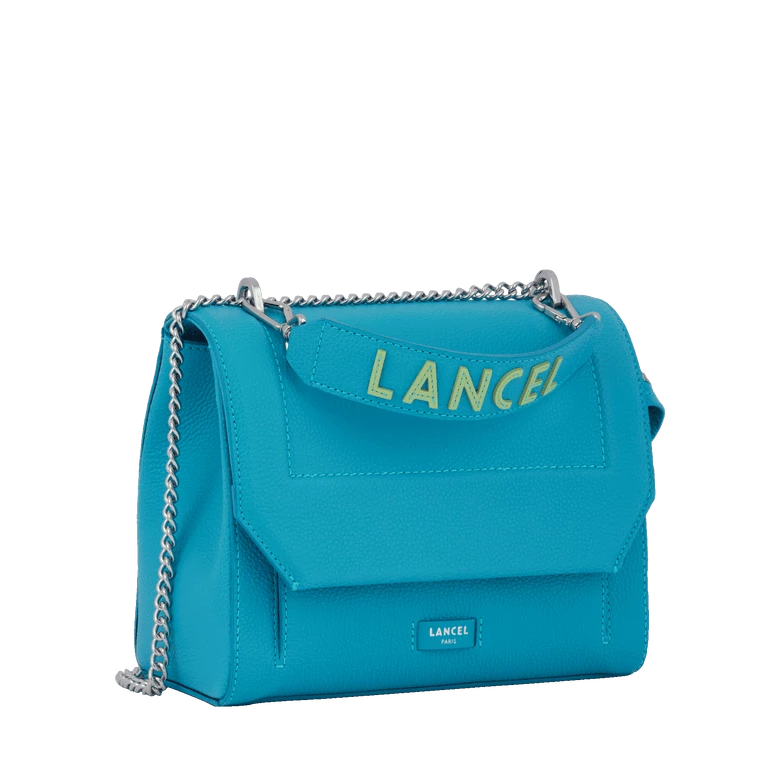 history Young and accessible, NINON de LANCEL is our new line of fashion and urban bags, to wear day and night. Modern and multifaceted with its chain and sliding leather shoulder strap offering an ingenious multi-carry, NINON de LANCEL is characterized by its graphic and assertive style. Signature elements of this strong personality line, the maxi logo handle, curved details and asymmetrical zip give it a rock and trendy look. The bags are made of round, lightweight cowhide leather, offering a structured and flexible look. details Grained cowhide leatherFlap bag Textile lining Removable handle with contrasting letters One exterior patch pocket on the back One exterior zipped pocket under the flap One inside patch pocket One inner zipper pocket Sliding chain and leather shoulder strap Made in Italy REF:A1174786TU size 23,5 x 19 x 12 cm care We advise a careful application of the “crème essentielle” to revive and protect your product.