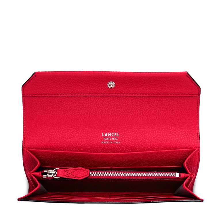 history Young and accessible, Ninon de Lancel is our new line of fashion and urban bags, to wear day and night. Modern and multifaceted with its chain and sliding leather shoulder strap offering an ingenious multi-carry, Ninon de Lancel is characterized by its gr details Grained cow leatherPetrol textile lining Two compartments for banknotes, papers, tickets A multifunctional patch pocket Eight card slots One zipped coin compartment Made in Europe REF:A09986IRTU size 20 x 4 x 11 cm
