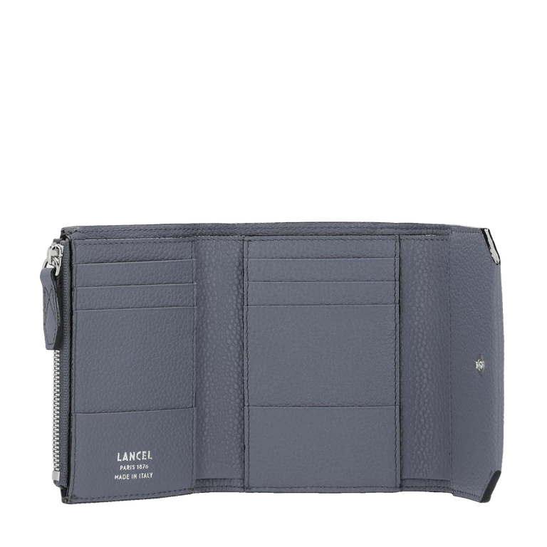 history Young and accessible, Ninon by Lancel is our new line of fashionable and urban bags, to be worn day and night. Modern and multifaceted with its sliding leather and chain shoulder strap offering an ingenious multi-carry, Ninon by Lancel is characterised by its graphic and assertive style. The signature elements of this strong personality line are the maxi logo handle, the curved details and the asymmetrical zip, which give it a trendy rock look.  The bags are made from light, round-grained cowhide leather, which is both structured and supple. details Grained leatherTextile lining A compartment for bills Six card slots Two ticket slots Two multifunction patch pockets A zipped coin compartment Made in Europe REF:A10296DITU size 12 x 9,5 x 2 cm care We advise a careful application of the “crème essentielle” to revive and protect your product.