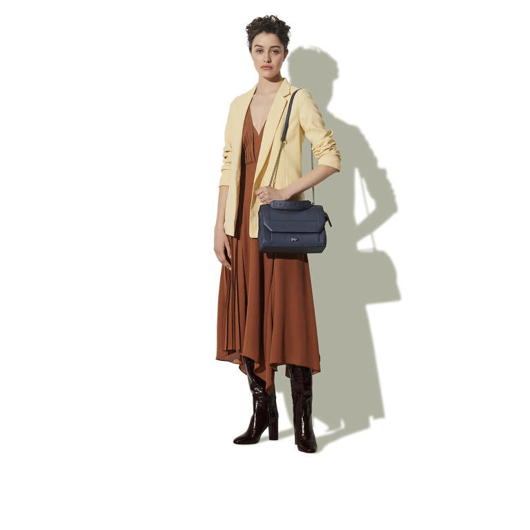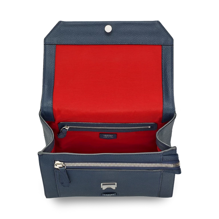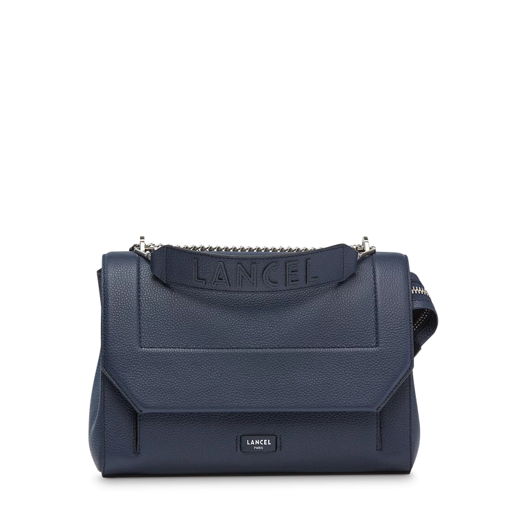 history Young and accessible, Ninon de Lancel is our new line of fashion and urban bags, to wear day and night. Modern and multifaceted with its chain and sliding leather shoulder strap offering an ingenious multi-carry, Ninon de Lancel is characterized by its graphic and assertive style. Signature elements of this strong personality line, the maxi logo handle, curved details and asymmetrical zip give it a rock and trendy look. The bags are made of round, lightweight cowhide leather, offering a structured and flexible look. details Grained leatherRed grosgrain lining Chain and leather shoulder strap One external patch pocket on the back One outside zipped pocket under the flap Two inside patch pockets One zipped inside pocket Made in Europe REF:A0922380TU size 27 x 19,5 x 12 cm care We advise a careful application of the “crème essentielle” to revive and protect your product.