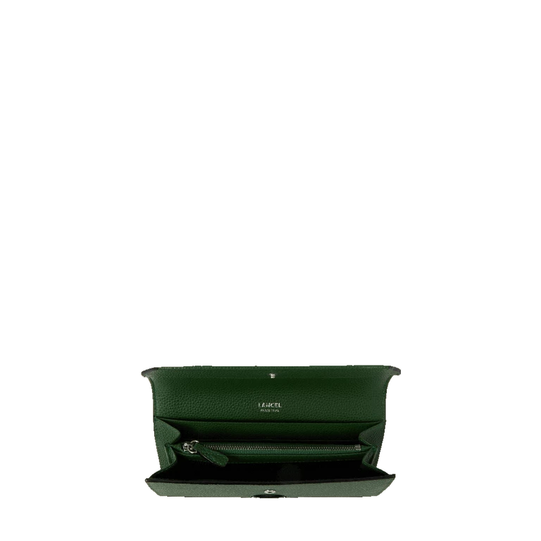 history Young and accessible, Ninon by Lancel is our new line of fashionable and urban bags, to be worn day and night. Modern and multifaceted with its sliding leather and chain shoulder strap offering an ingenious multi-carry, Ninon by Lancel is characterised by its graphic and assertive style. The signature elements of this strong personality line are the maxi logo handle, the curved details and the asymmetrical zip, which give it a trendy rock look.  The bags are made from light, round-grained cowhide leather, which is both structured and supple. details Grained cowhide leatherTextile lining Two compartments for bills, papers, tickets A multifunction patch pocket Eight card slots A zipped coin compartment Made in Italy REF:A09986J3TU size 20 x 11 x 4 cm care We advise a careful application of the “crème essentielle” to revive and protect your product.