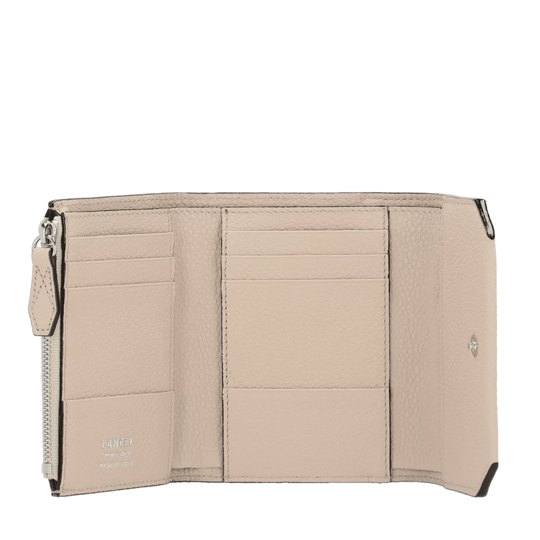 history Young and accessible, Ninon by Lancel is our new line of fashionable and urban bags, to wear day and night. Modern and multifaceted with its sliding leather and chain shoulder strap offering an ingenious multi-carry, Ninon by Lancel is characterized by its graphic and assertive style. The signature elements of this strong personality line are the maxi logo handle, the curved details and the asymmetrical zipper that give it a rock and roll look.  The bags are made of light, round-grained cowhide leather that is both structured and supple. details Grained cowhide leatherLancel Red Textile lining A compartment for bills Six card slots Two ticket slots Two multifunction patch pockets A zipped coin compartment Made in Europe REF:A10296KQTU size 12 x 9,5 x 2 cm care We advise a careful application of the “crème essentielle” to revive and protect your product.