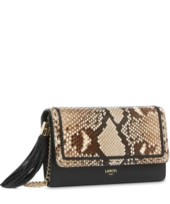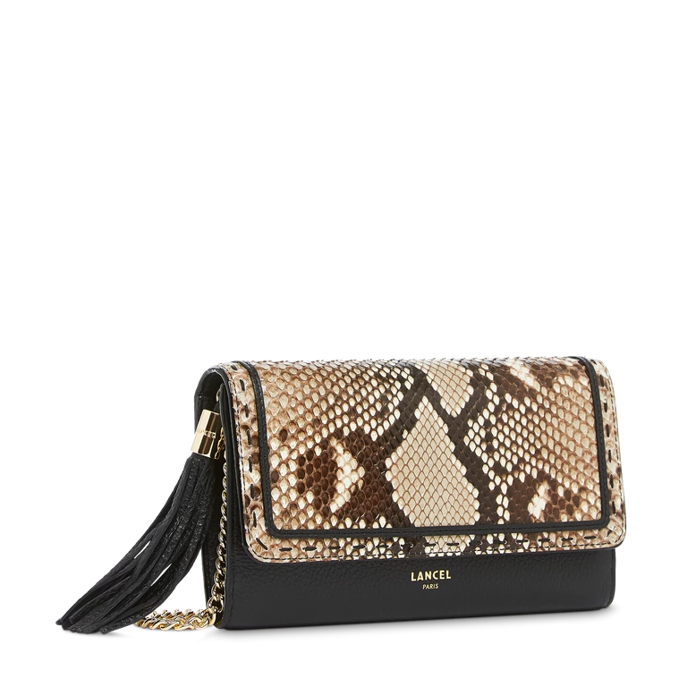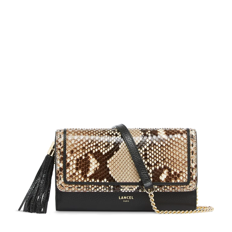 history Lancel reinterprets the Premier Flirt bag, legendary and timeless with its young, fashionable and feminine allure. Imbued with the brand’s heritage, Premier Flirt retains the codes that have made the reputation of the line: a recognizable shape, details of leather tassels, an iconic front pocket highlighted by contrasting stitching … These rich and recognizable details are updated with a new detachable L enamel bag charm adorned with metal rivets. Day or night, the Premier Flirt bag gives style and elegance on all occasions, while remaining very practical, a value dear to Maison Lancel. details Grained cowhide leather and pythonTextile lining Detachable chain and leather shoulder strap Two leather loops at the back for wearing on the belt Two compartments for tickets, papers, tickets Two multifunction patch pockets Ten card slots A zipped coin compartment Compatible with the latest smartphones Made in Europe REF:A111406KTU size 20 x 12 x 2 cm